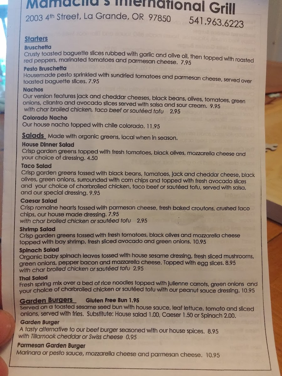 Mamacita's International Grill Menu